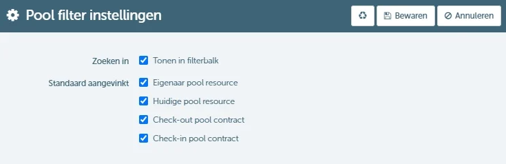 Sie können die Benutzereinstellungen des Poolfilters über das Zahnradsymbol neben dem Titel "Pool" in der Filterleiste aufrufen (und ändern):