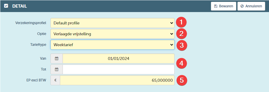 | 3 | Sie können für jede Tarifart einen bestimmten Betrag festlegen. Wir empfehlen, für jede Tarifart einen Betrag festzulegen, damit Sie für alle möglichen Vertragslaufzeiten immer einen Rückkaufsbetrag zur Verfügung haben. So sind Sie für jede Vertragslaufzeit gut gerüstet. | YES | Es ist wichtig zu verstehen, wie Tarifarten strukturiert sind, da sich eine Tarifart in der Einheit unterscheiden kann. Ein Wochentarif kann zum Beispiel pro Tag berechnet werden, indem der Tagespreis mit sieben multipliziert wird (7x Tagespreis), oder er kann ein Festpreis für die ganze Woche sein (1x Wochenpreis). Daher ist es wichtig, die verwendete Einheit zu kennen, wenn man einen Tarif festlegt. Wenn Sie mit einem festen Wochenpreis arbeiten, geben Sie einfach einen Preis für die ganze Woche ein. Wenn Sie jedoch einen Wochensatz auf der Grundlage des Tagessatzes berechnen, müssen Sie den richtigen Tagessatz einstellen. Dieser Tagespreis wird dann mit der Anzahl der Tage multipliziert. Vorsicht: Wenn Sie versehentlich einen Wochenpreis statt eines Tagespreises eingeben, könnte dieser fälschlicherweise mit der Anzahl der Tage multipliziert werden, was zu einer falschen Berechnung führt. |