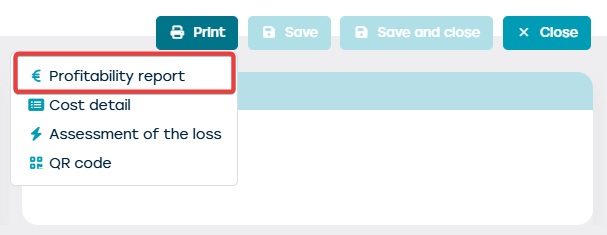 On the resource card, you will see a 'Print' button in the top right corner. With this button, you can print the profitability report.