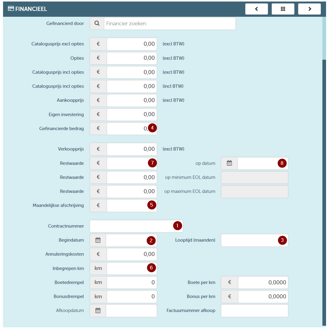 | IncludedKm | Included kilometers in the contract. Will be filled in the "Included km" field on the resource form. (see 6 in screenshot) |