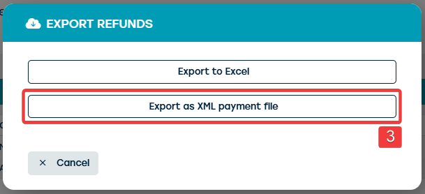 - When you click on the button "Export" (6), an XML file will be downloaded. You can then upload this file in your payment application, where the exported reimbursements will be executed in one go.