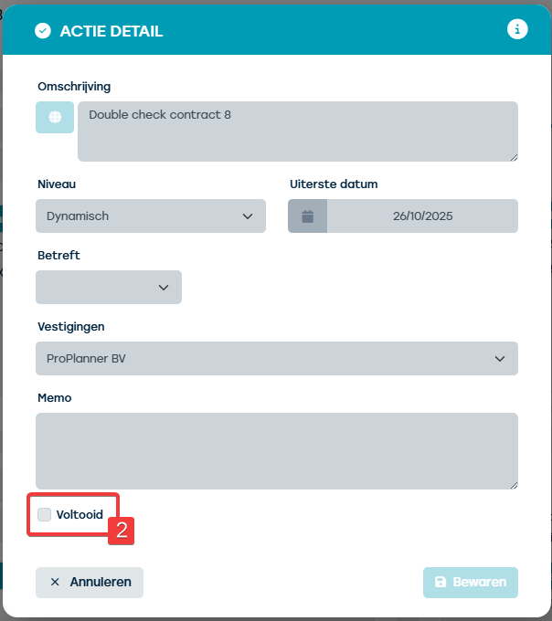 - Edit an action (only for actions you created yourself) and complete (2)