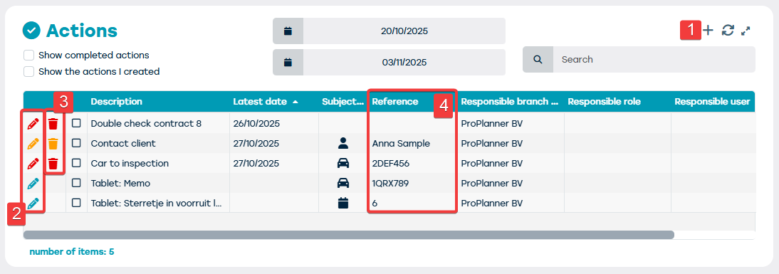 - Delete an action (only for actions you created yourself) (3)