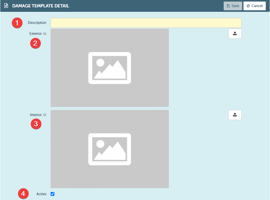 - It is recommended to use the 3:4 image format and exercise caution when modifying templates. Existing templates may already be in use, which may result in the (placement of) damages no longer applying after template modification.