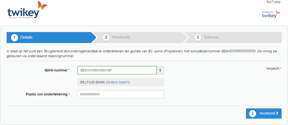 You can also do the reverse and create the mandate via Twikey and then retrieve the data in ProPlanner.