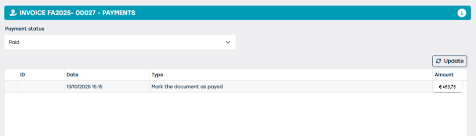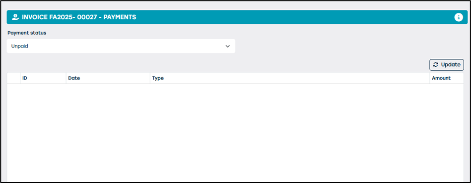 After the payment has been reversed and the invoice has been deleted, the payment status will revert to “Unpaid.”