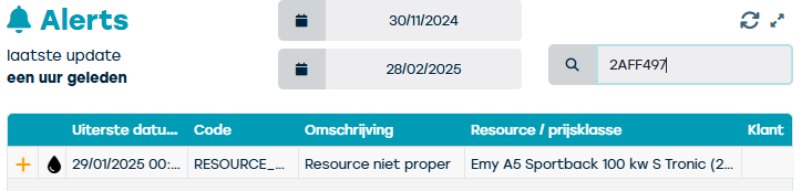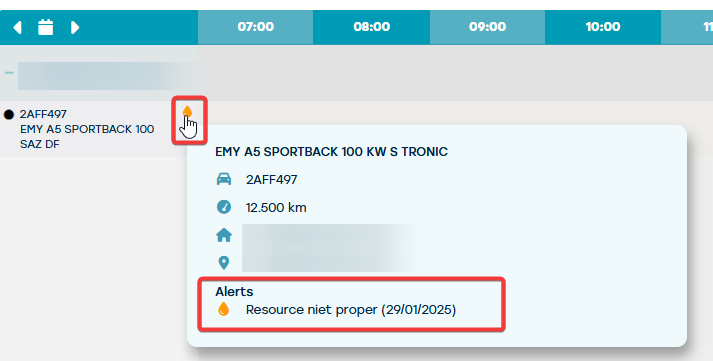 The alert arising from the entered/standard cleanliness status translates into a drop icon on the vehicle and on future bookings with this vehicle in the schedule and is also visible on the dashboard in the alerts. This alert has no blocking impact on the schedule and serves only as an informational notification.