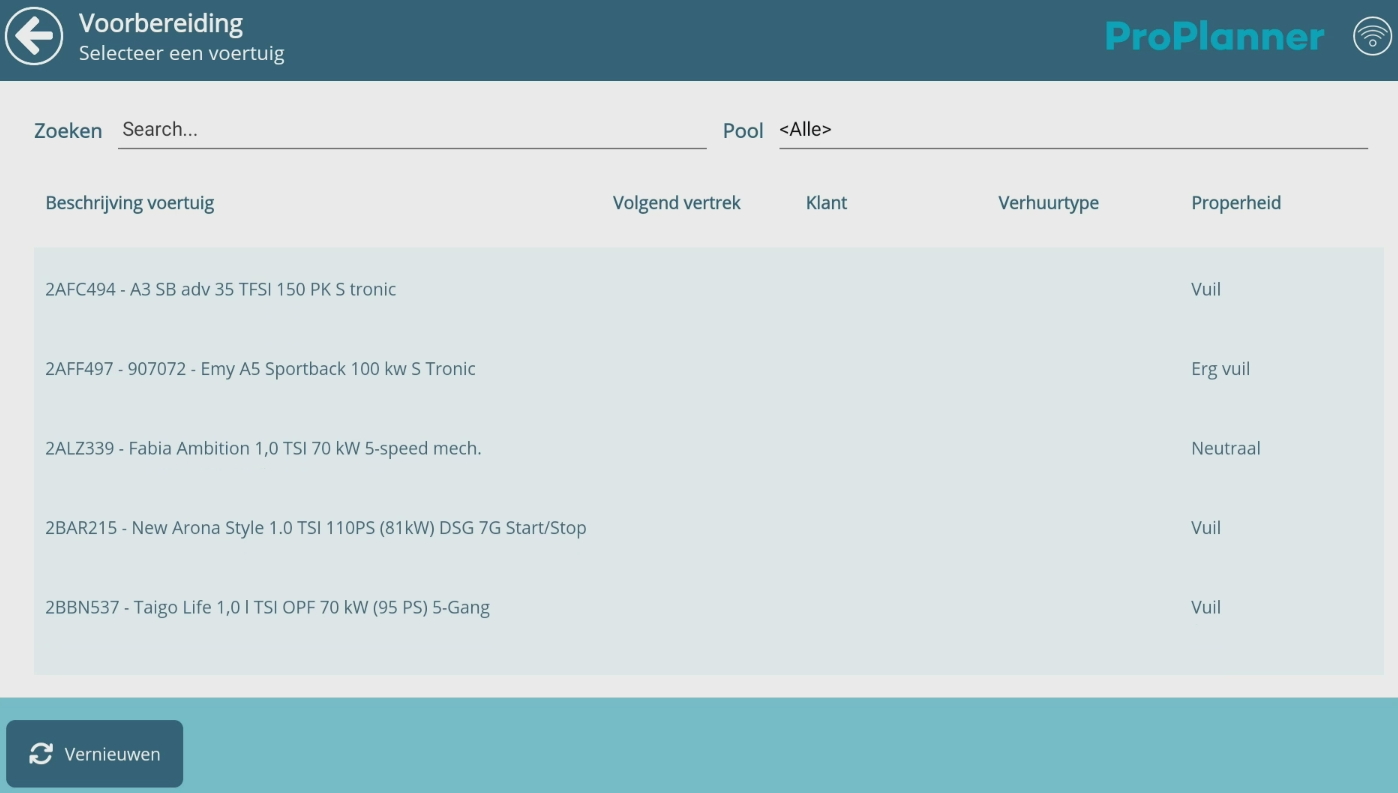 Through the PITSTOP module in ProPlanner, you can also determine what the minimum cleanliness value of the vehicle should be at check-out. If this standard is exceeded, ProPlanner will give you a warning. You can also enter these values manually at check-in or you can choose to provide a default value. E.g. every vehicle regardless of its cleanliness status is always given the value "dirty" at check-in, both for interior and exterior. Do you want to set this up? Then contact us so we can do this for you.