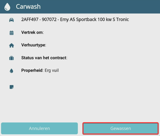 Once the car has been washed, you can select the vehicle in the list and designate it as "washed" so that it disappears from the list: