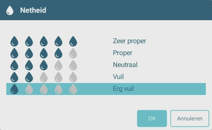 During the check-in procedure on the tablet, on the screen where you can also indicate the damage report, you can indicate the cleanliness of the car via the "cleanliness" button.