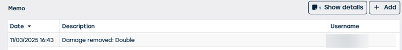Once you have entered a reason, you can actually remove the damage by clicking the 'delete' button. The reason entered is stored in the memo field, preceded by the text 'damage removed'; for full documentation of the action.