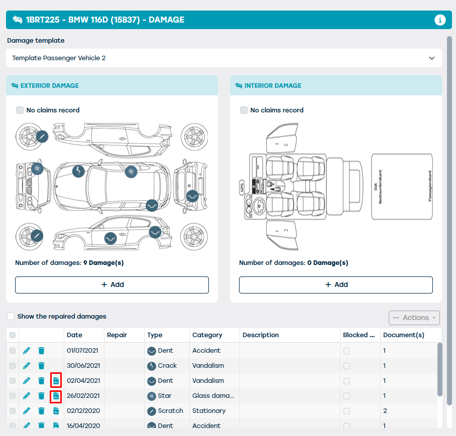 On the resource sheet you can see which damages are contract-related and which are not thanks to the “contract icon. Using the trash can you can remove a loose damage there.