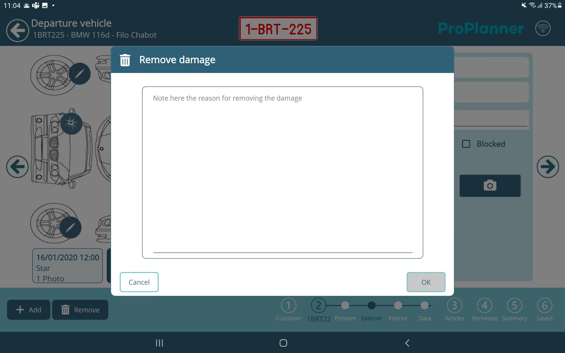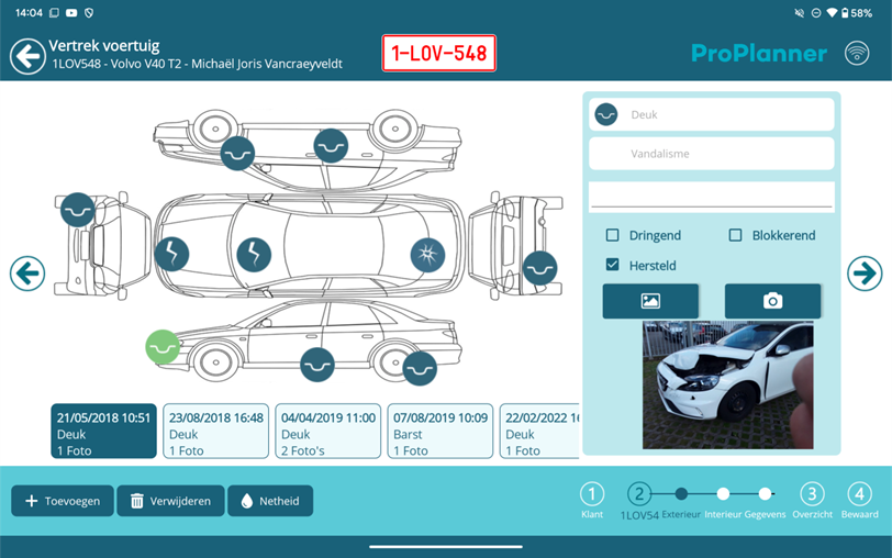 Please note: it is not possible to delete damages on a current contract. Contract related damages can be removed both via the tablet and the web.