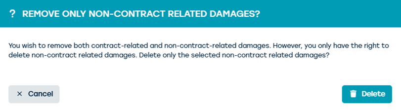 If you only have permissions to delete single damages here and you also check contract related damages, the message “Delete only non-contract related damages?” will be displayed. Only the damages for which you have permissions will be removed in this case.