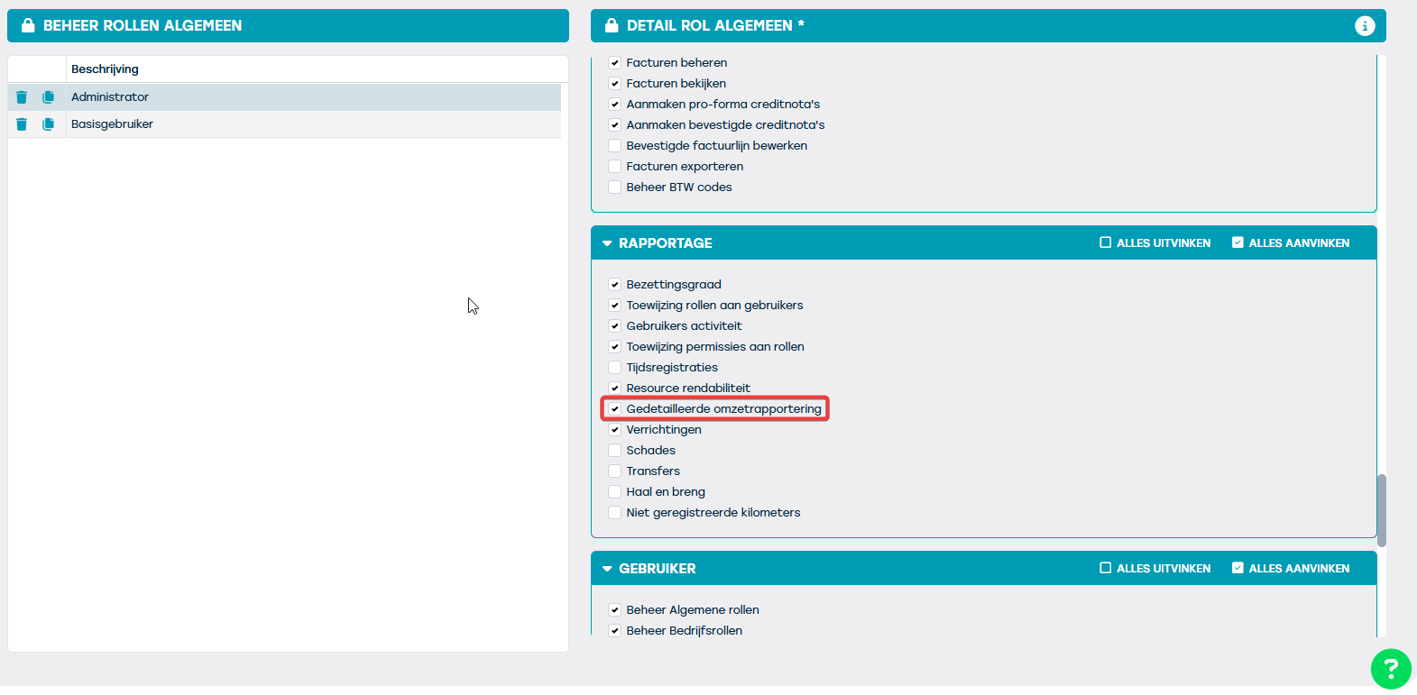 To access this report, you must have the appropriate permissions. In the general role, the right to detailed revenue report must be checked under reporting.