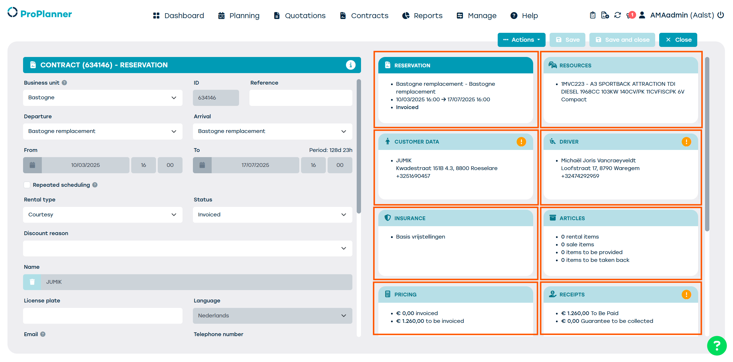 Each rental type is automatically linked to a specific pricing category and insurance coverage, ensuring consistent and accurate handling of costs and protection.