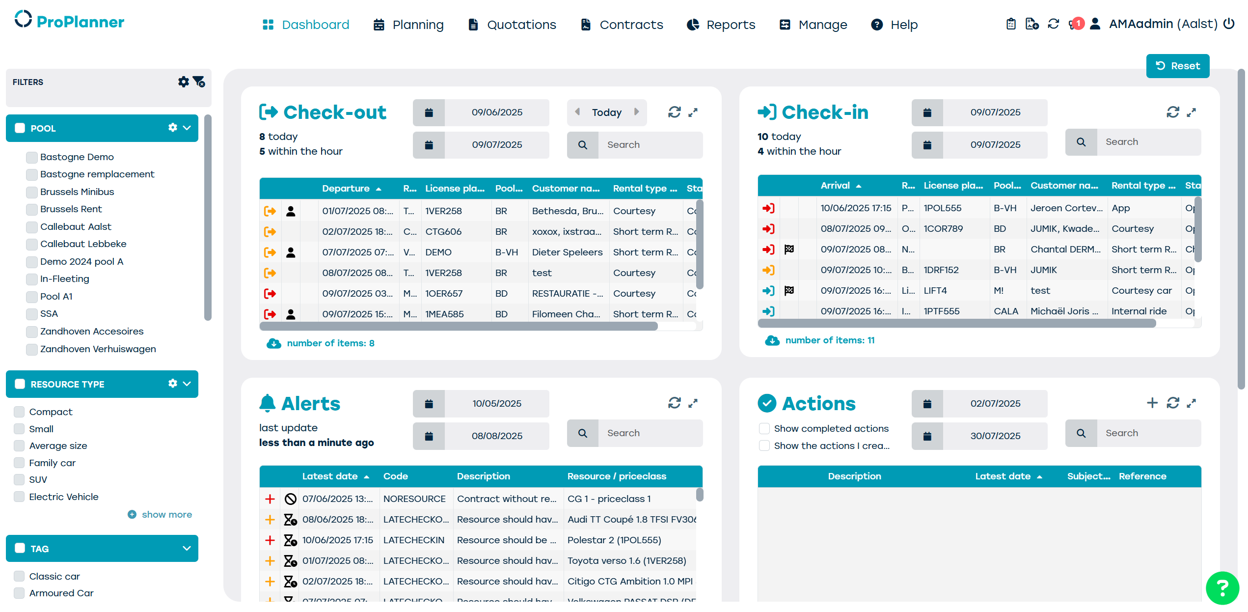 Important daily information on departing and returning vehicles, alerts, availabilities, etc.