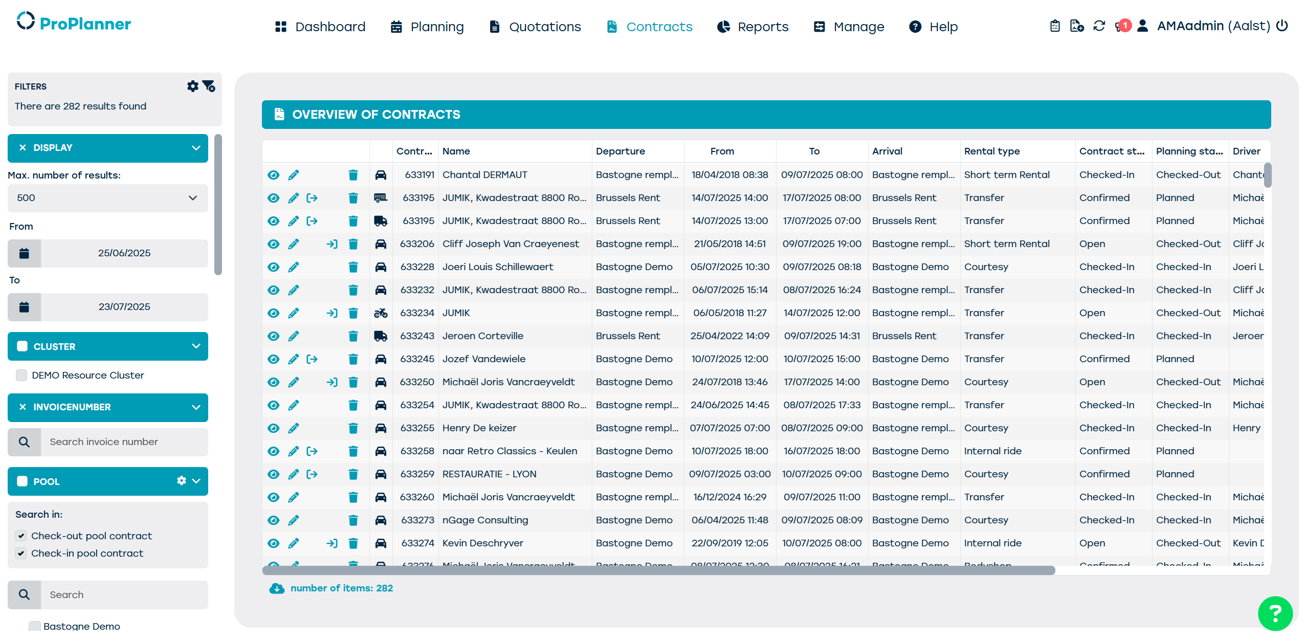 These tabs give you an overview of all quotations and contracts that have ever been created.