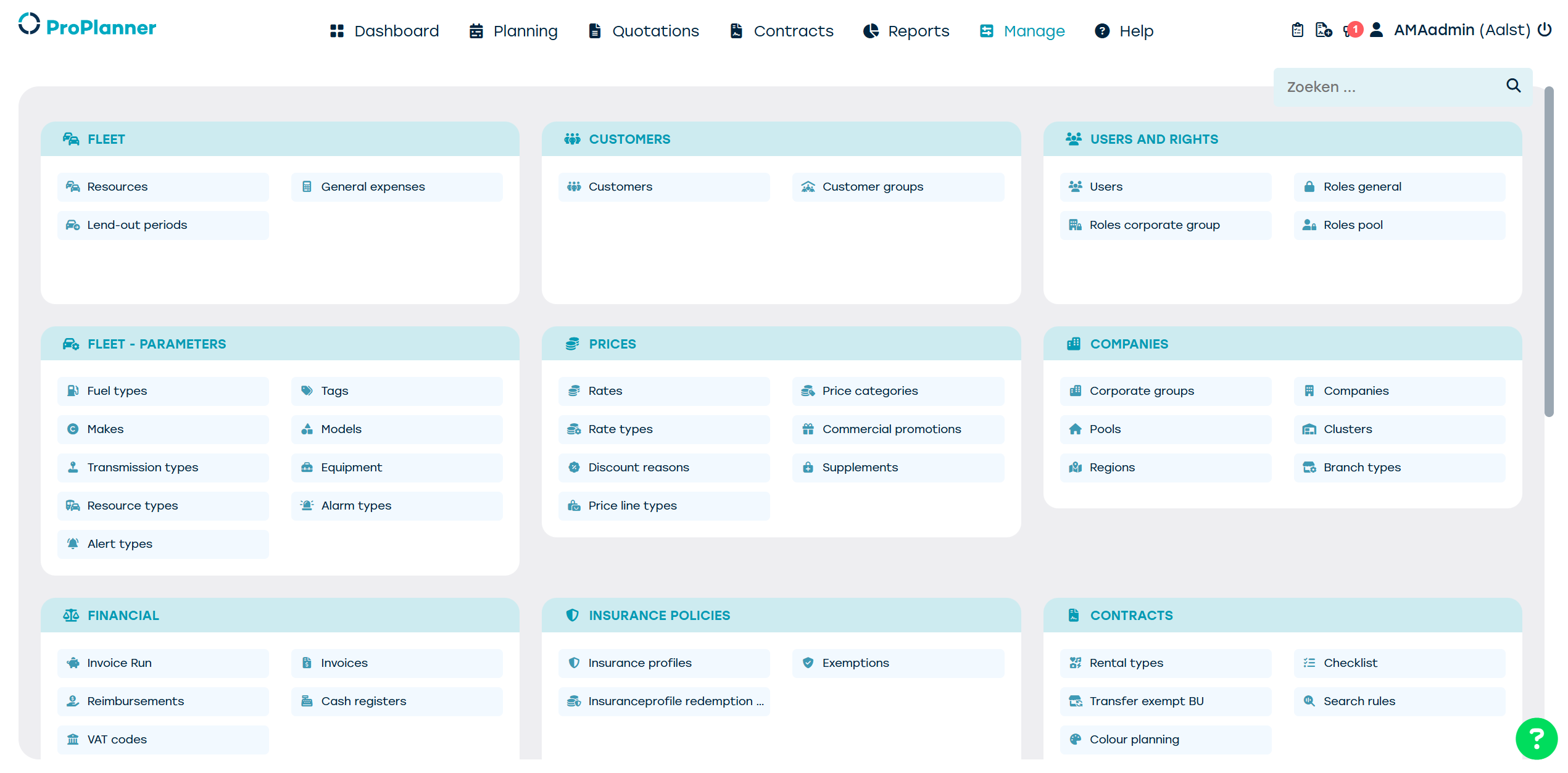 In this tab you can manage anything from resources, pools and clusters to pricing and insurances, limited to the rights that have been assigned to your account.