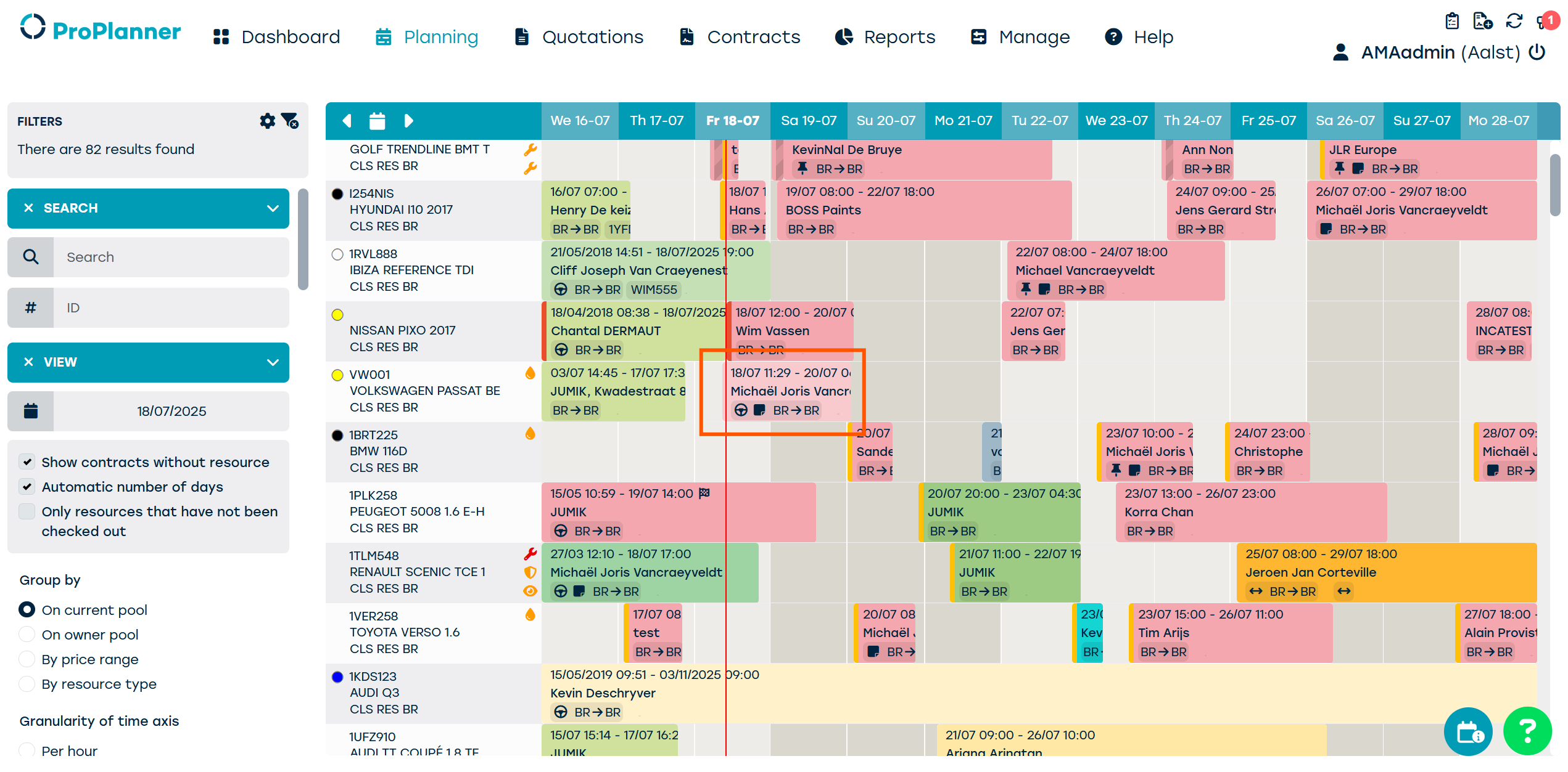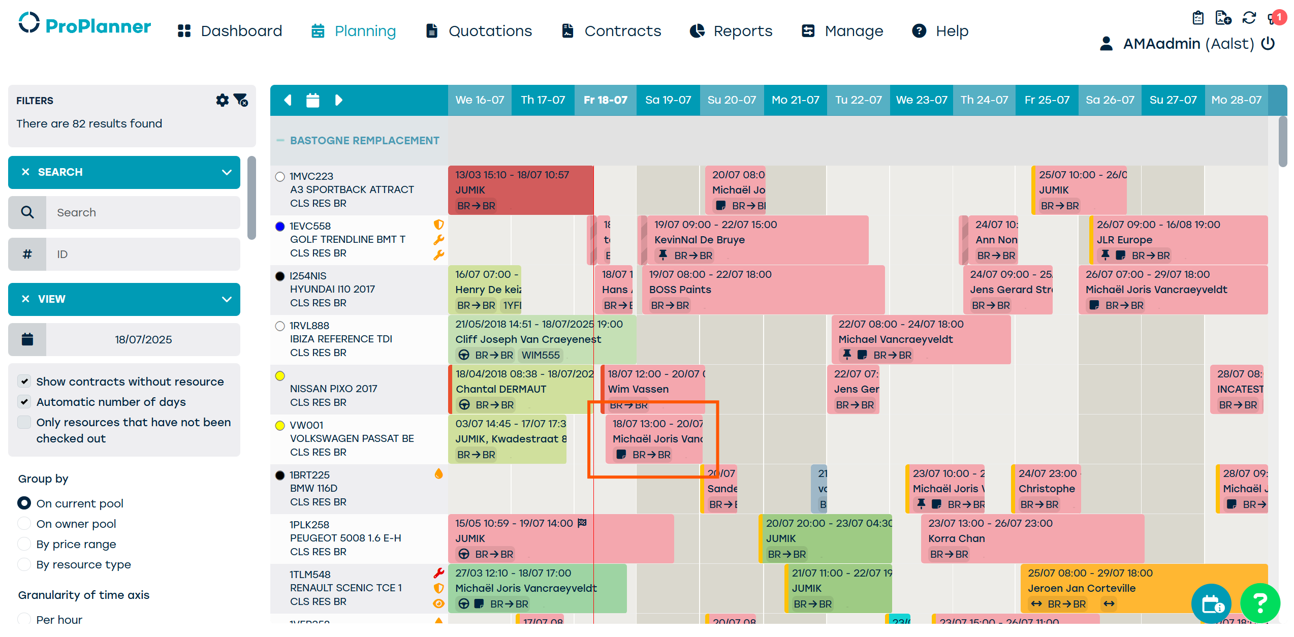 Back in the planning we now see that the contract's timing is adjusted to the true check-out time.