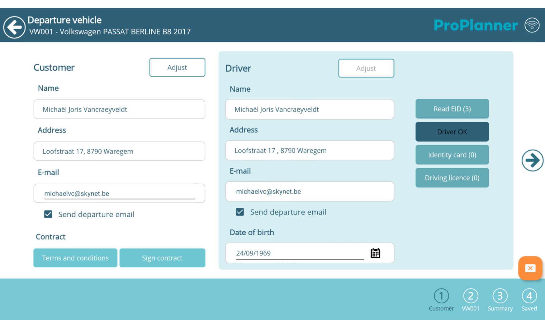 Here we can check customer's information and add an EID or pictures of his documentation if we want to - Resource (licence plate)
