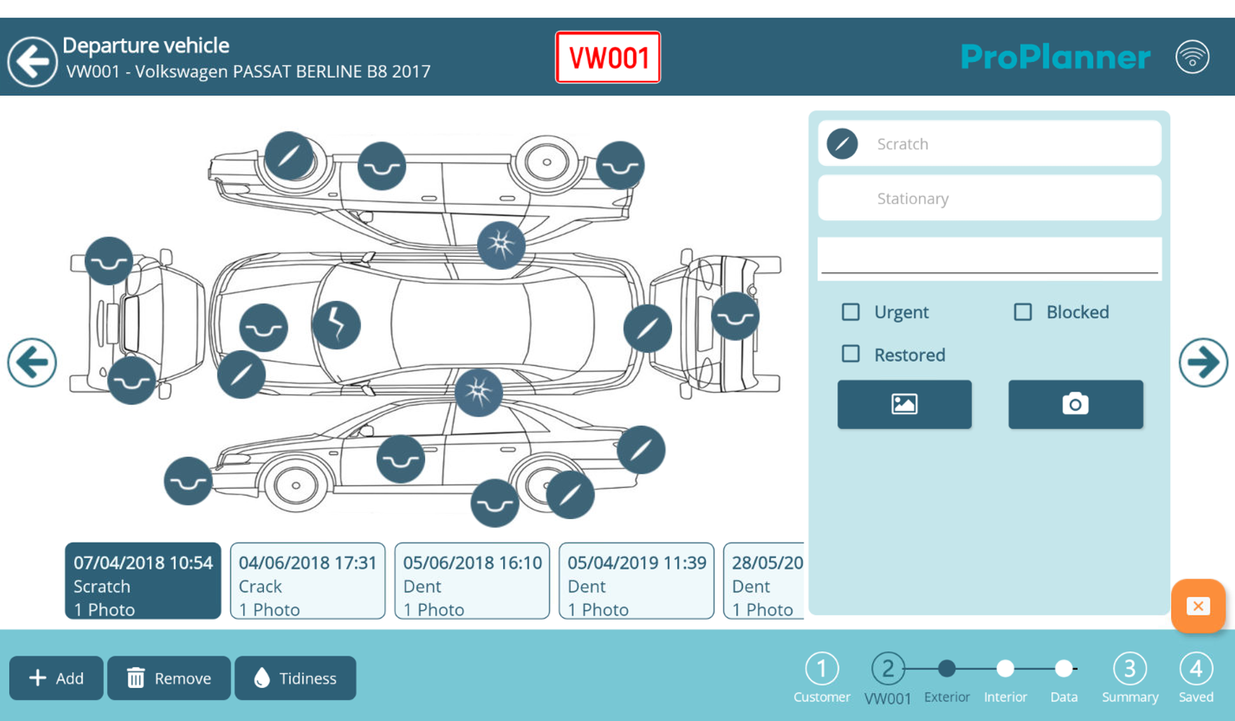 Here we can perform a quick inspection of the car and review the current state of the car with the customer - Summary