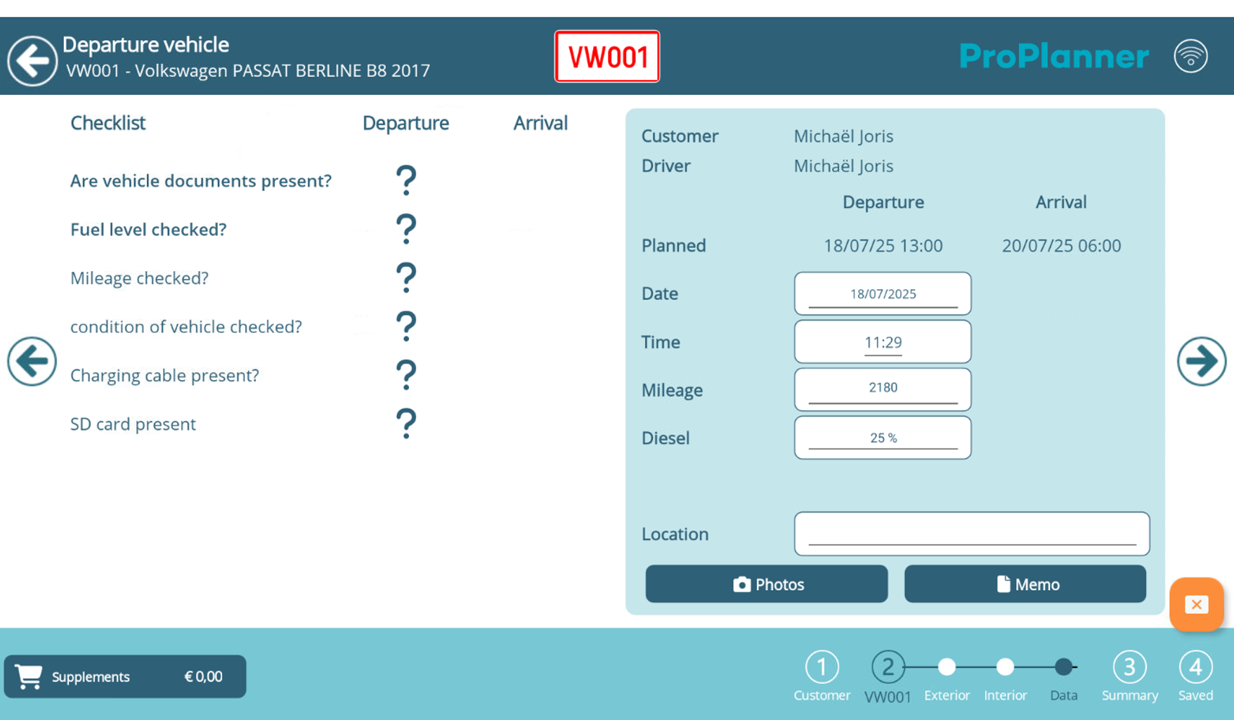 Date, time, mileage and fuel level will automatically be synchronized with the latest information in ProPlanner, but you can adjust if it isn't correct.
