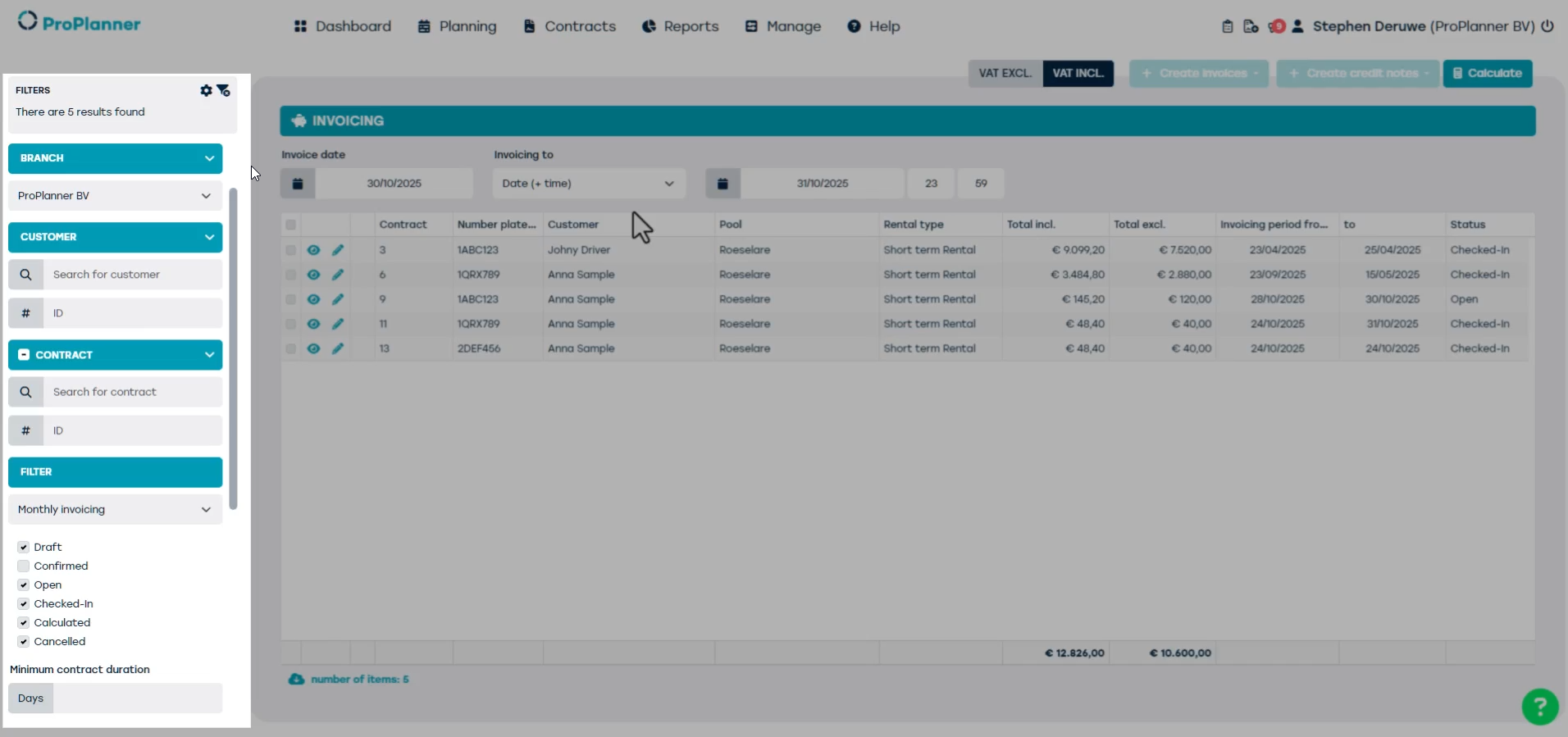 The Invoice Run feature in ProPlanner provides users with a convenient overview of all contracts that still need to be invoiced. Instead of checking each contract individually for outstanding balances, this feature displays all relevant invoicing items in a single view. This reduces the risk of errors and increases the efficiency of the invoicing process.