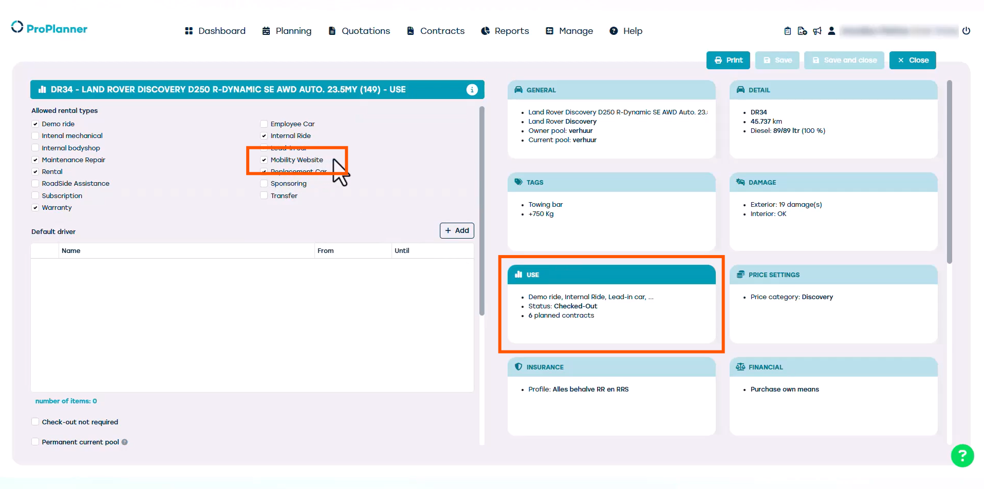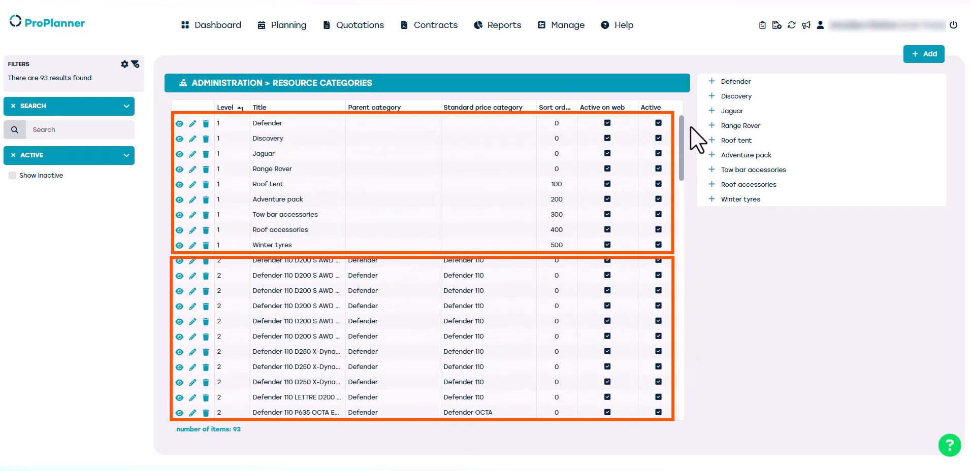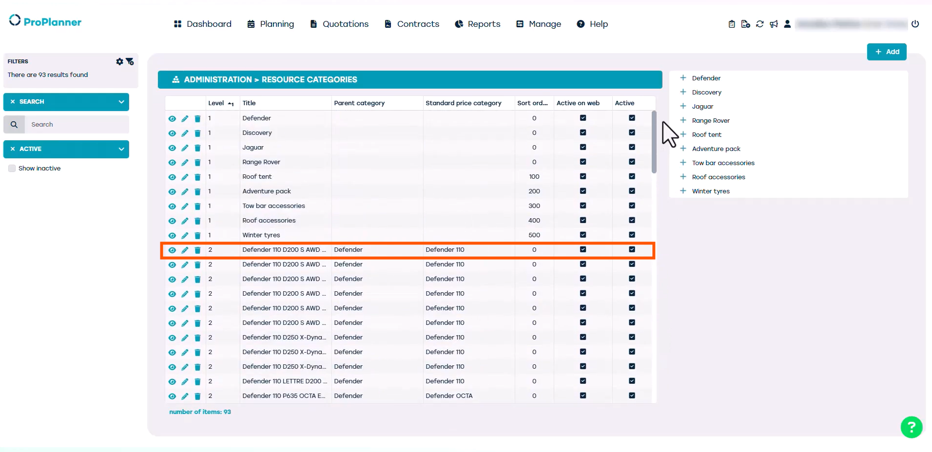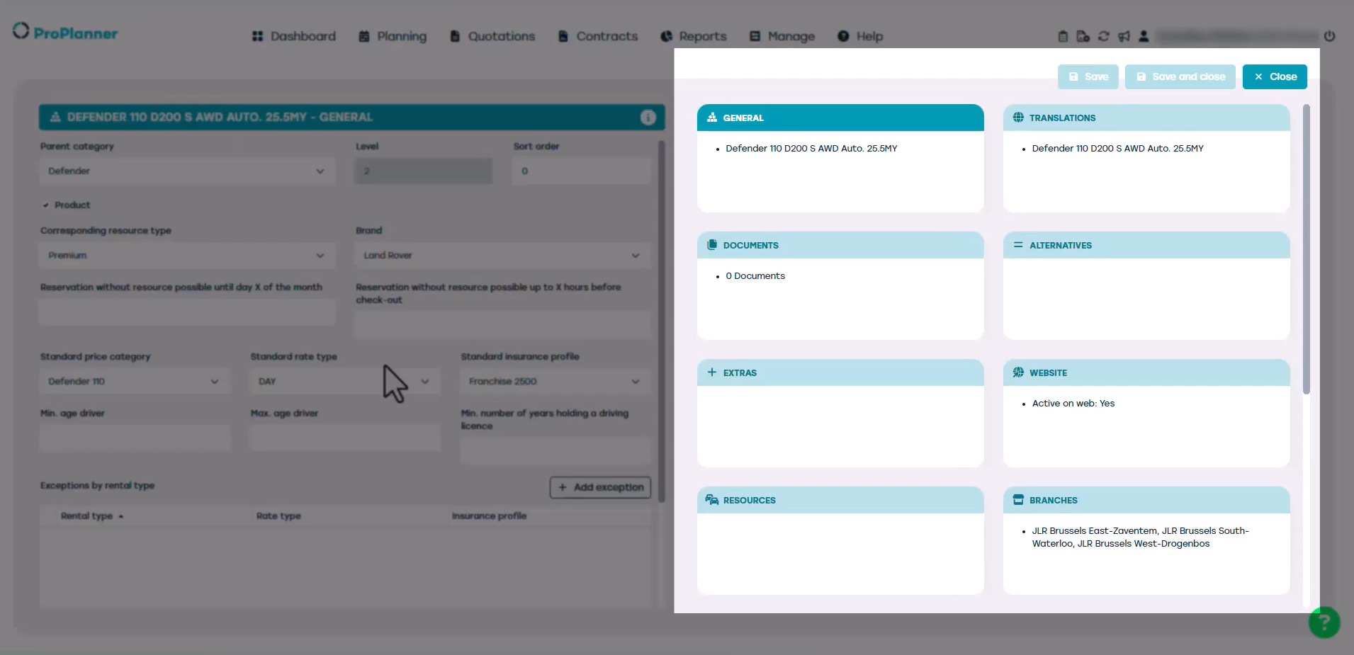 This is why, when a rental vehicle is created in ProPlanner in the JLR environment, a new resource category is automatically generated.
