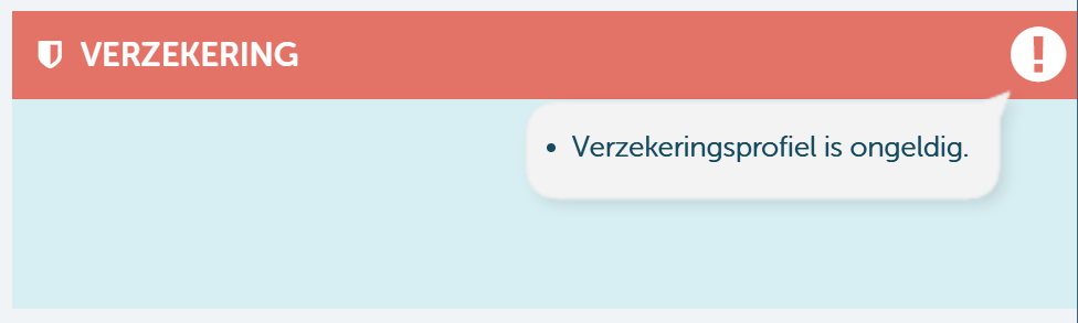 Si un champ n'est pas rempli, cela est également affiché dans la tuile où se trouve ce champ. Ceci est indiqué à la fois en colorant le titre de la tuile en rouge, et en affichant une icône. Si l'on passe la souris sur cette icône, la raison pour laquelle la tuile est colorée en rouge s'affiche.