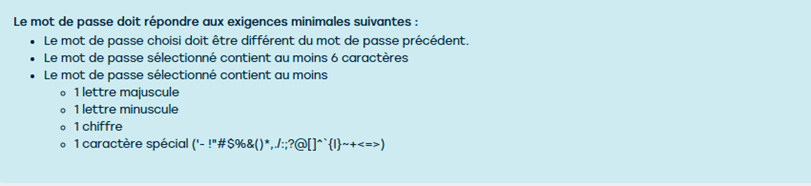 - Complexité: le mot de passe doit contenir au moins une lettre majuscule, une lettre minuscule, un chiffre et un caractère non alphanumérique.
