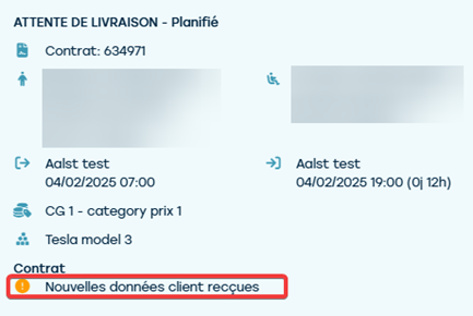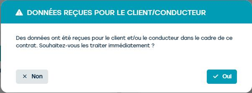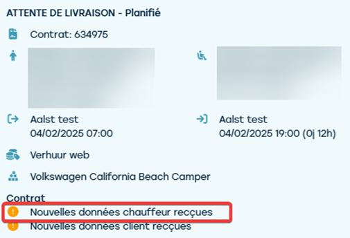 Un message apparaîtra également sur le contrat une fois que le conducteur aura complété ses données, à savoir « nouvelles données chauffeur reçues » :