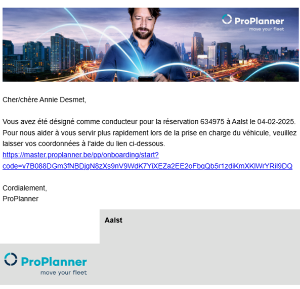 Pour en revenir au conducteur invité, il recevra l'e-mail ci-dessous lui indiquant qu'il a été désigné comme conducteur de la voiture en question :