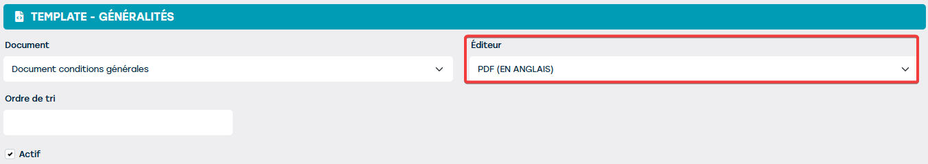 La manière la plus simple est de télécharger les conditions sous forme de PDF. Sur la tuile 'Général', choisissez PDF dans l'éditeur :