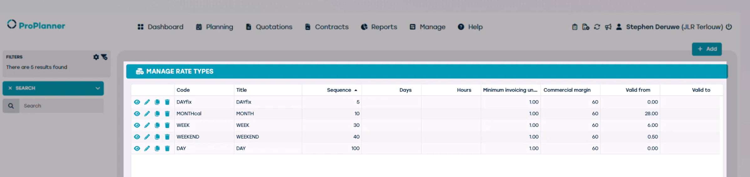 Un type de tarif définit la période à laquelle un tarif s'applique. Sur la base de cette période, ProPlanner sélectionne automatiquement le tarif adéquat pour le contrat.