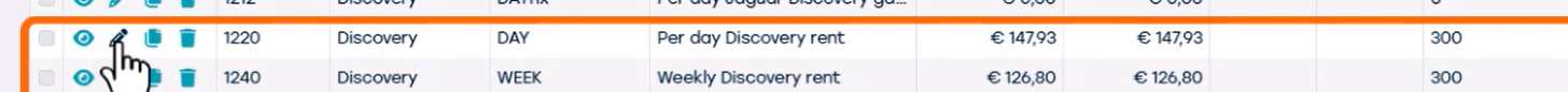 Pour mettre à jour le prix d'une ligne tarifaire, cliquez simplement sur l'icône crayon ou double-cliquez sur la ligne à modifier.