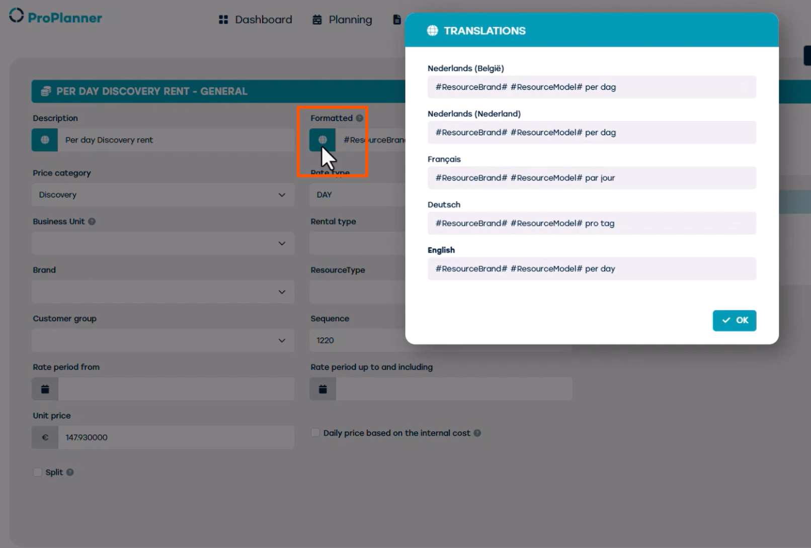 ProPlanner propose un module de calcul des prix puissant qui prend en charge ce processus et garantit que le bon prix est appliqué automatiquement.