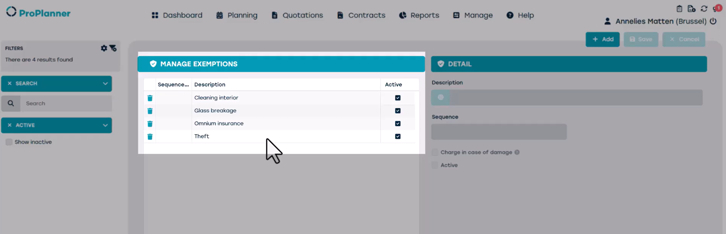 En cliquant sur « Ajouter » vous pouvez créer une nouvelle exonération. Dans le champ description, vous pouvez donner une étiquette à l’exonération. En raison de la portée légale de ces descriptions, il peut être souhaitable de les faire vérifier par votre conseiller juridique.