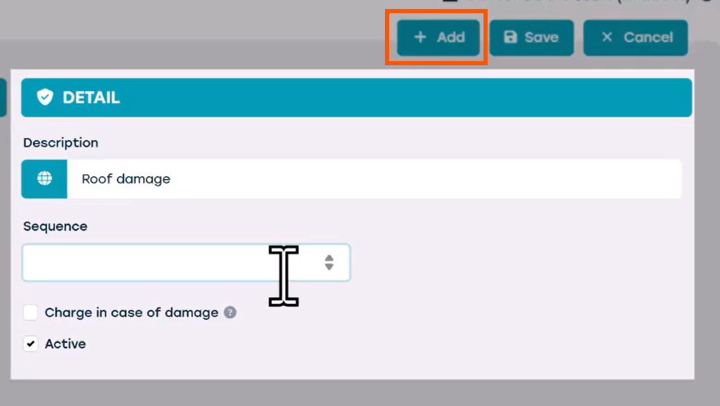 Ajoutons « dommages au toit » à notre liste. Dans le champ « Séquence », vous pouvez spécifier l’ordre d’apparition dans la liste. Nous cliquons sur enregistrer.