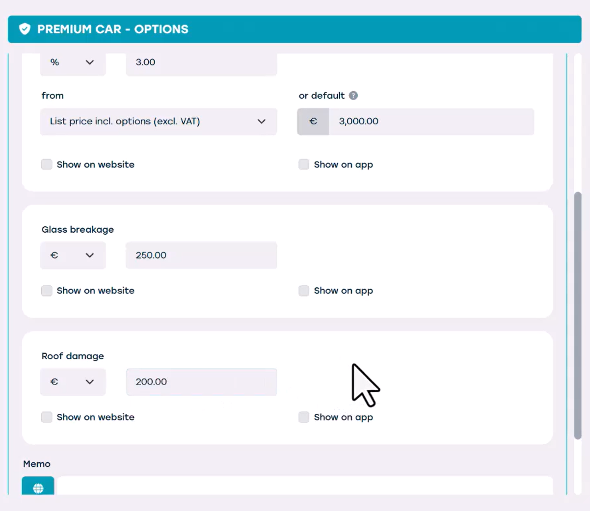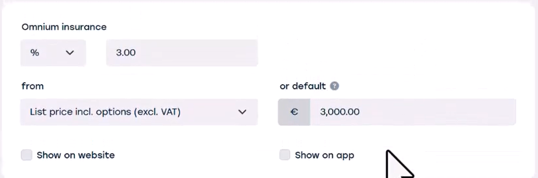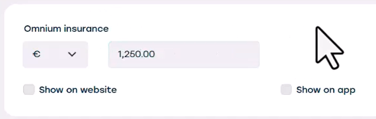 Il y a deux façons d’attribuer une valeur d’assurance. Nous pouvons choisir un prix fixe par exonération — par exemple, 1 250 €.