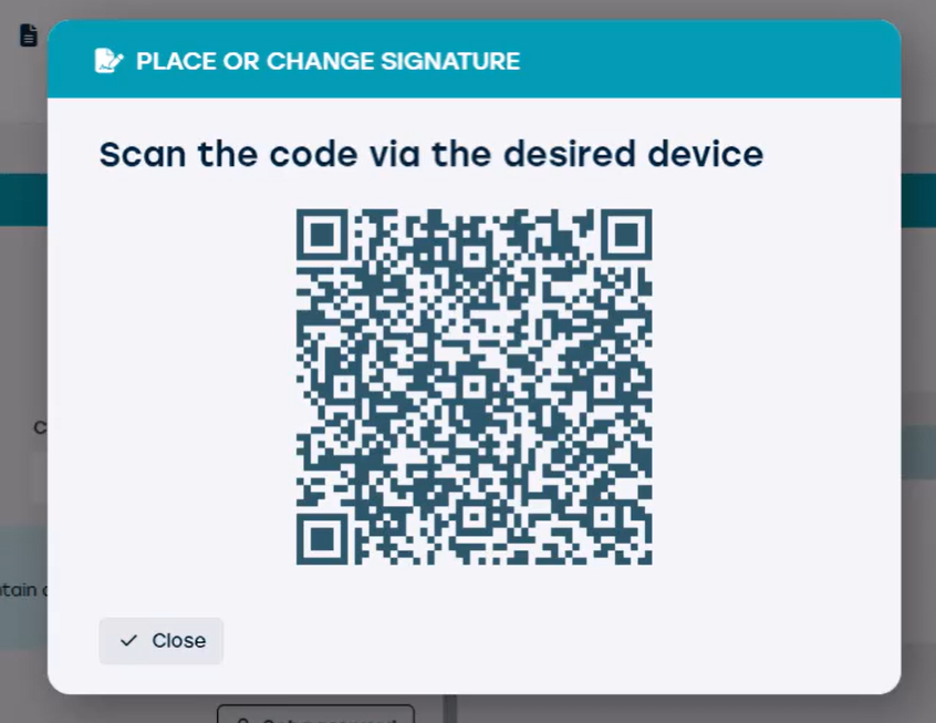 Un code QR va apparaître sur votre écran. Scannez le code QR avec votre appareil mobile. Suivez les instructions sur votre téléphone pour créer et enregistrer votre signature. Une fois terminé, la signature sera liée au compte et utilisée dans les documents concernés.