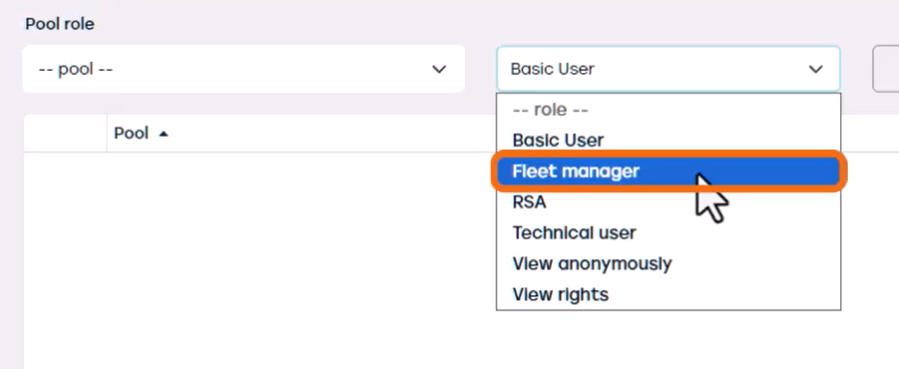 - Rôle de groupe d’entreprise : cela concerne les droits qui sont assignés à un ou plusieurs groupes d’entreprise, y compris leurs flottes associées