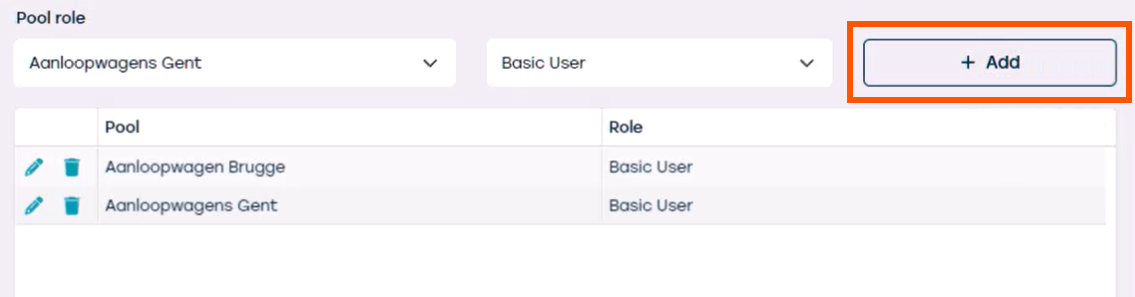 Pour attribuer le rôle d’utilisateur de base à l’utilisateur, sélectionnez la flotte appropriée, choisissez le rôle Utilisateur de base dans le menu déroulant, puis cliquez sur Ajouter.