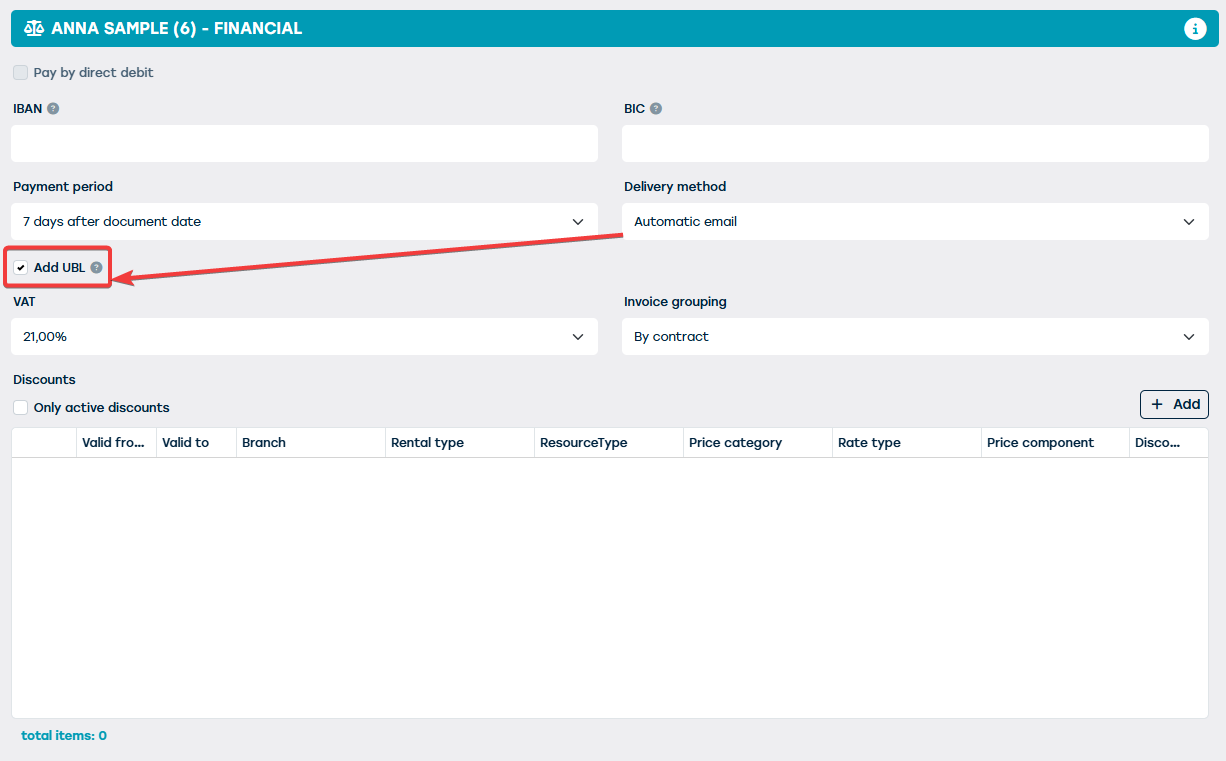 Enkel beschikbaar indien module UBL actief is