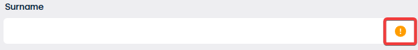 Verplichte velden worden aangeduid met een geel icoon op het einde van de invoerbalk:
