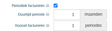 - Vooruit factureren:hier bepaal je of er vooruit moet worden gefactureerd, en zo ja, hoeveel periodes