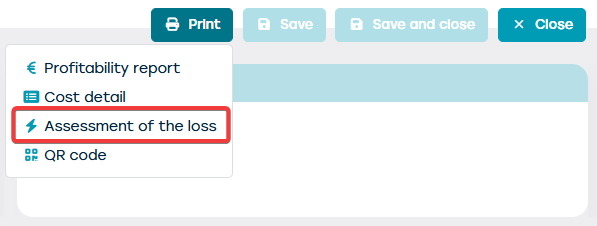Op de resourcefiche ziet u bovenaan rechts een knop 'Afdrukken'. Met deze knop kan u de schadestaat afprinten.