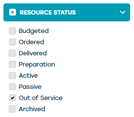 Eens de actief tot en met datum niet meer op het planningsoverzicht wordt getoond zal het voertuig ook niet meer worden getoond. Het voertuig kan wel altijd worden teruggevonden via het overzicht van de resources, door te filteren op voertuigen uit dienst .