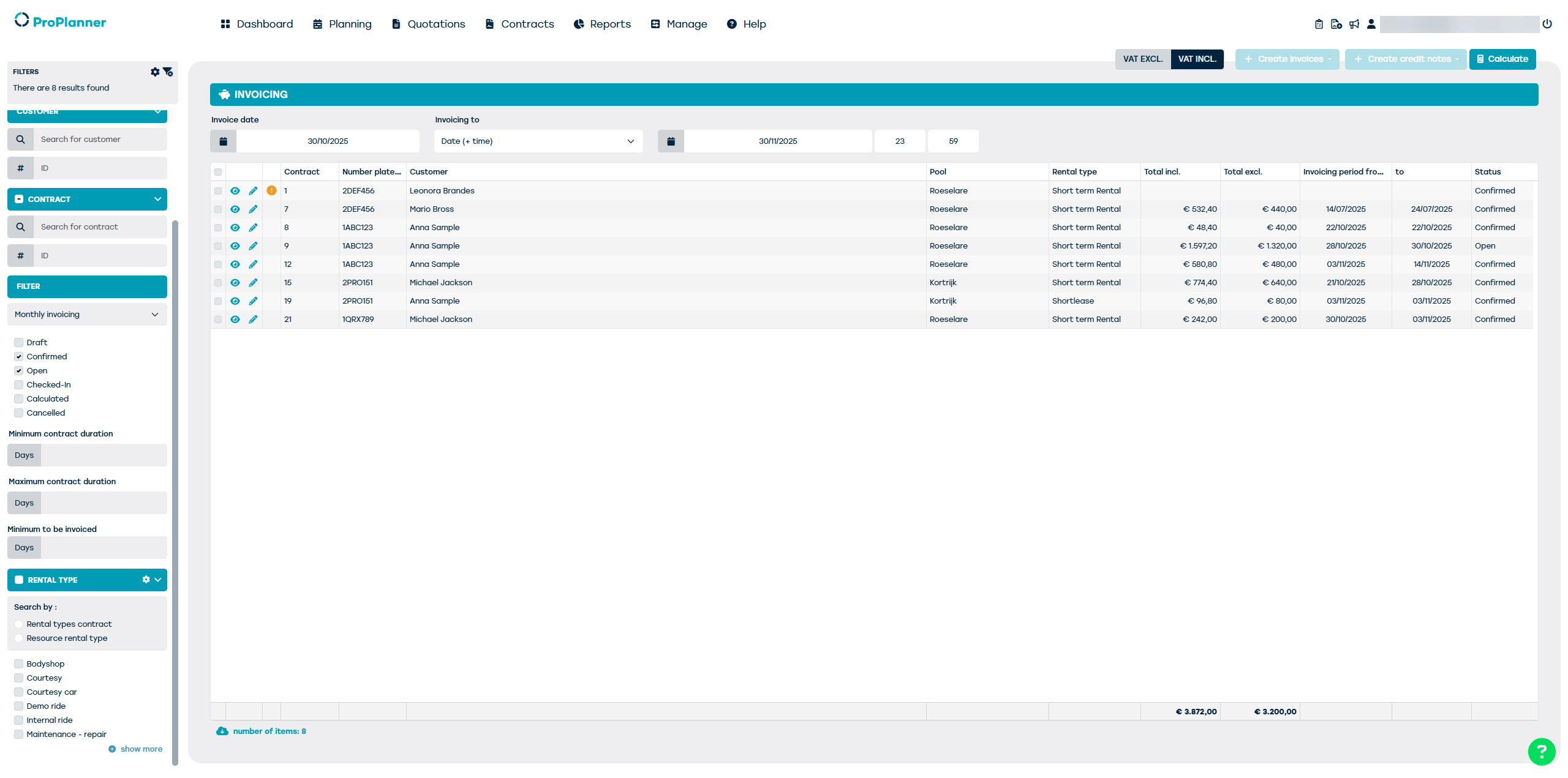 Met de invoice run is het mogelijk om verschillende contracten tegelijk te factureren. U krijgt een overzicht van alles wat nog gefactureerd moet worden. Ideaal om wekelijks of maandelijks te factureren. Op deze manier is het ook mogelijk om meerdere contracten op 1 factuur factureren.