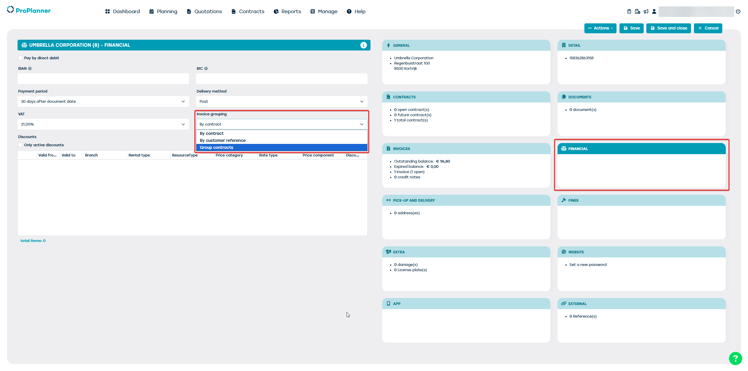 Als u beschikt over de module uitgebreide facturatie is het mogelijk om meerdere contracten op 1 factuur te factureren.